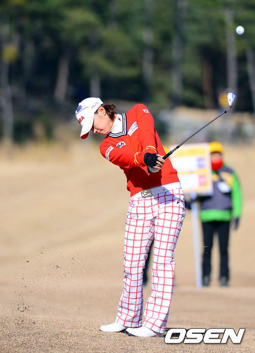 1일 부산 베이사이드 G.C.에서 열린 KB금융컵 제11회 한일 여자프로골프 국가대항전,6번홀 최나연이 세컨샷을 날리고 있다