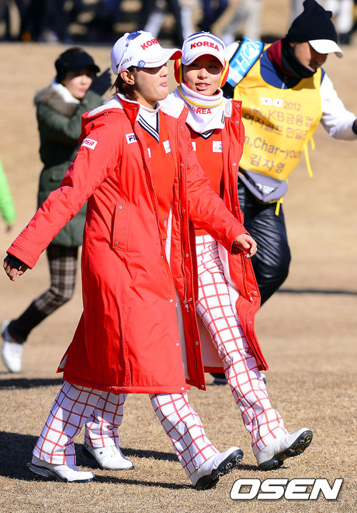 1일 부산 베이사이드 G.C.에서 열린 KB금융컵 제11회 한일 여자프로골프 국가대항전,6번홀 최나연과 김자영이 페어웨이를 걸어가고 있다