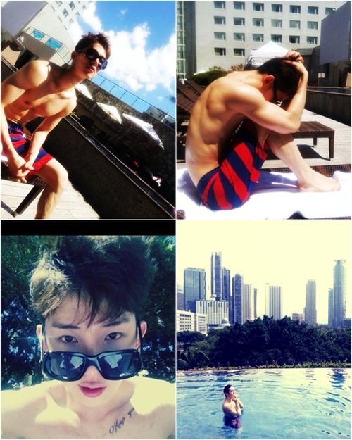 조권은 1일 오후 자신의 트위터에 “지난번 수영장에서. 일어나자마자”라는 글과 함께 자신의 사진을 게재했다.