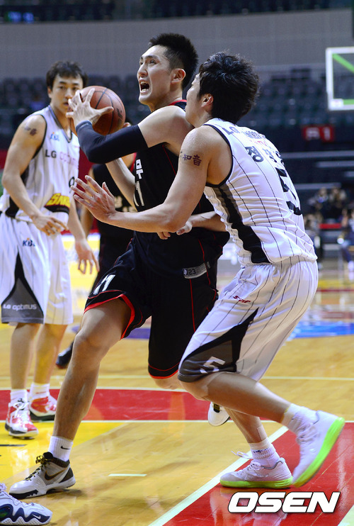 1일 오후 경기 고양시 고양실내체육관에서 열린 '2012 KB국민카드 프로-아마 최강전' 창원 LG와 상무의 경기 2쿼터 상무 기승호가 골밑 돌파를 시도하고 있다.