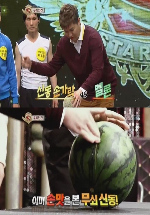 신동은 1일 방송된 SBS 예능프로그램 '놀라운 대회 스타킹'에서 손끝으로 수박 격파하기에 성공했다.
