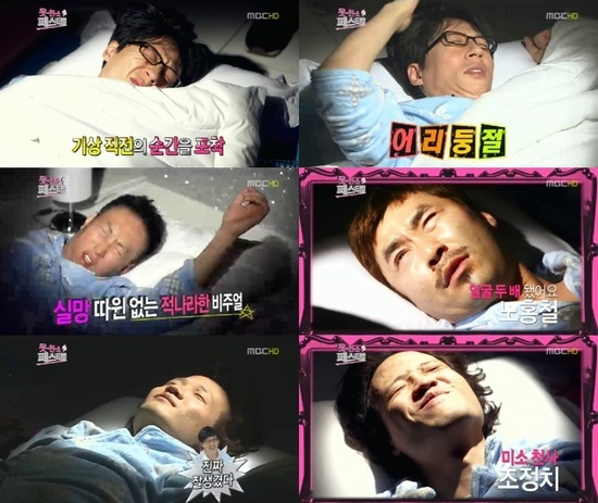 1일 오후 방송된 '무도'에서는 전날 라면을 먹고 자고 일어난 못친소 멤버들의 적나라한 얼굴을 공개했다.