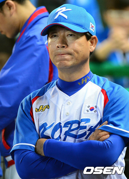 1일 오후 대만 타이중 인터컨티넨탈구장에서 열린 '제26회 아시아야구선수권대회' 한국과 일본의 경기 9회초 이연수 감독이 경기를 지켜보고 있다.