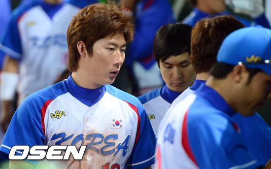 1일 오후 대만 타이중 인터컨티넨탈구장에서 열린 '제26회 아시아야구선수권대회' 한국과 일본의 경기 종료 후 고영민이 덕아웃에서 장비를 챙기고 있다.