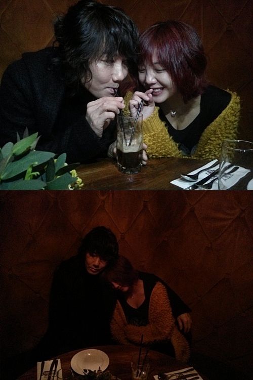 첫 번째 사진 속 김장훈-고은아는 하나의 음료를 함께 마시고 있고, 두 번째 사진에서는 고은아가 김장훈의 어깨에 기댄 다정한 포즈를 취하고 있다. 친밀하고 즐거워보이는 모습이 실제 연인 포스를 능가한다.