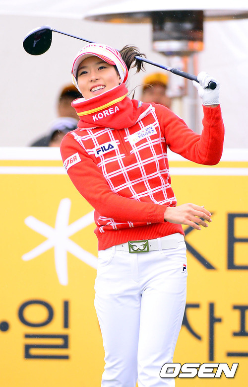 2일 부산 기장 베이드사이드GC에서 열린 '2012 KB금융컵 제11회 한일 여자프로골프 국가대항전 싱글 스트로크 매치, 1번홀 김자영이 티샷을 날리고 있다