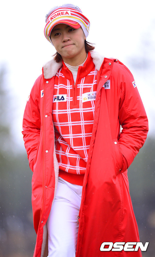 2일 부산 기장 베이드사이드GC에서 열린 '2012 KB금융컵 제11회 한일 여자프로골프 국가대항전 싱글 스트로크 매치, 1번홀에서 최나연이 보기 기록 후 아쉬운 표정을 짓고 있다