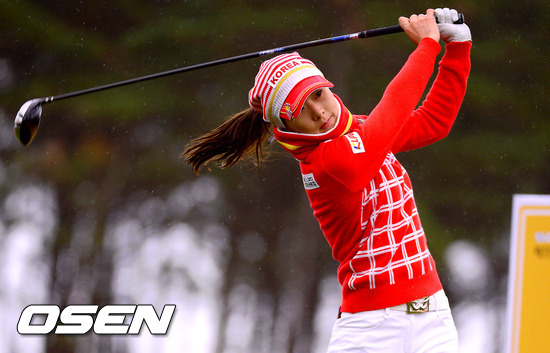 2일 부산 기장 베이드사이드GC에서 열린 '2012 KB금융컵 제11회 한일 여자프로골프 국가대항전 싱글 스트로크 매치, 2번홀 김자영이 티샷을 날리고 있다