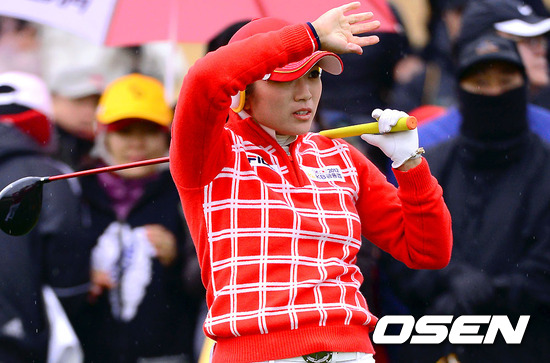 2일 부산 기장 베이드사이드GC에서 열린 '2012 KB금융컵 제11회 한일 여자프로골프 국가대항전 싱글 스트로크 매치, 1번홀 이보미가 티샷 후 공을 바라보고 있다