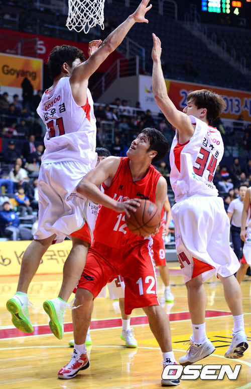 2일 오후 경기 고양시 고양실내체육관에서 열린 '2012 KB국민카드 프로-아마 최강전' 울산 모비스와 서울 SK의 경기, 2쿼터 모비스 함지훈이 골밑슛을 노리고 있다.