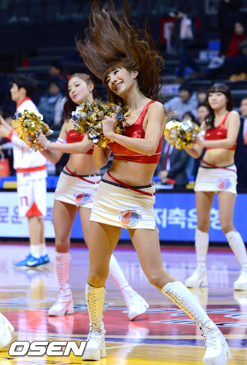 2일 오후 경기 고양시 고양실내체육관에서 열린 '2012 KB국민카드 프로-아마 최강전' 울산 모비스와 서울 SK의 경기전 치어리더가 응원을 펼치고 있다.
