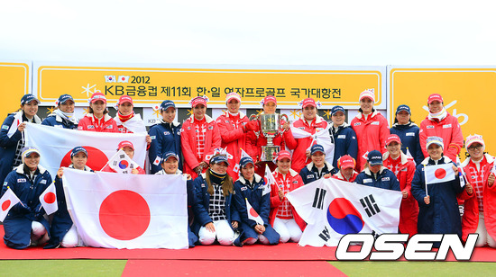 한국은 2일 부산 베이사이드GC 파크레이크 코스에서 열린 2012 KB금융컵 제11회 한일 여자프로골프 국가대항전 싱글 스트로크 매치플레이서 5승 3무 4패를 기록하며 승점 13점을 획득했다. 전날 포섬+포볼 스트로크 경기서 승점 10점을 얻었던 한국은 최종합계 23-13점으로 일본을 꺾었다.