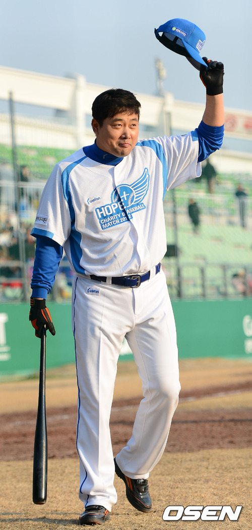 2일 오후 수원야구장에서 열린 국내 프로야구 최초의 자선경기 ‘HOPE+ Charity Baseball Match’ (희망더하기 자선 야구대회 2012)에서 양준혁이 홈런레이스 결승에서 우승한 후 인사를 하고 있다.
