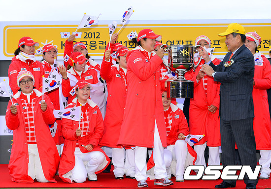 한국대표팀 주장 한희원이 우승 트로피를 건네받고 있다 /soul1014@osen.co.kr
