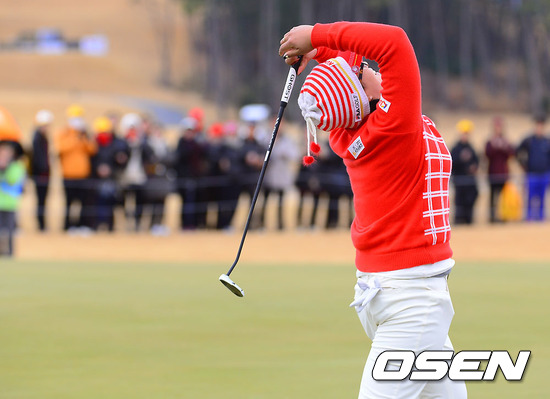 마지막홀에서 양희영이 버디를 기록하며 환호하고 있다 /soul1014@osen.co.kr