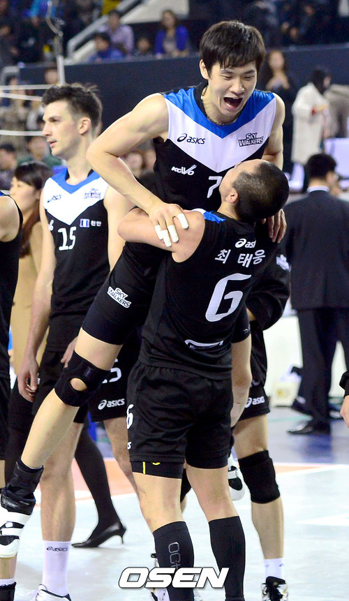 경기 종료 후 현대캐피탈 최태웅이 이선규와 기뻐하고 있다. / youngrae@osen.co.kr