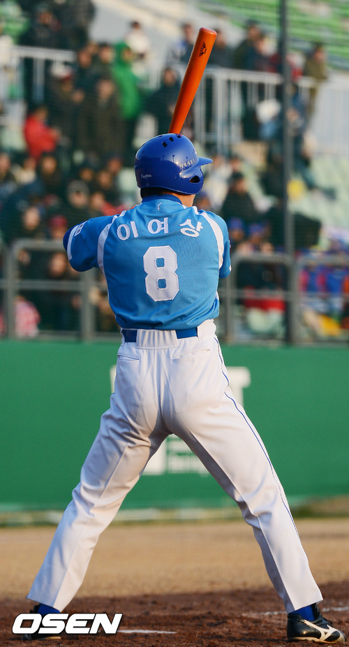 2일 오후 수원야구장에서 열린 국내 프로야구 최초의 자선경기 ‘HOPE+ Charity Baseball Match’ (희망더하기 자선 야구대회 2012)에서 통일팀이 평화팀에 6-5로 승리를 거뒀다. 9회초에 이여상이 양준혁을 흉내내고 있다.