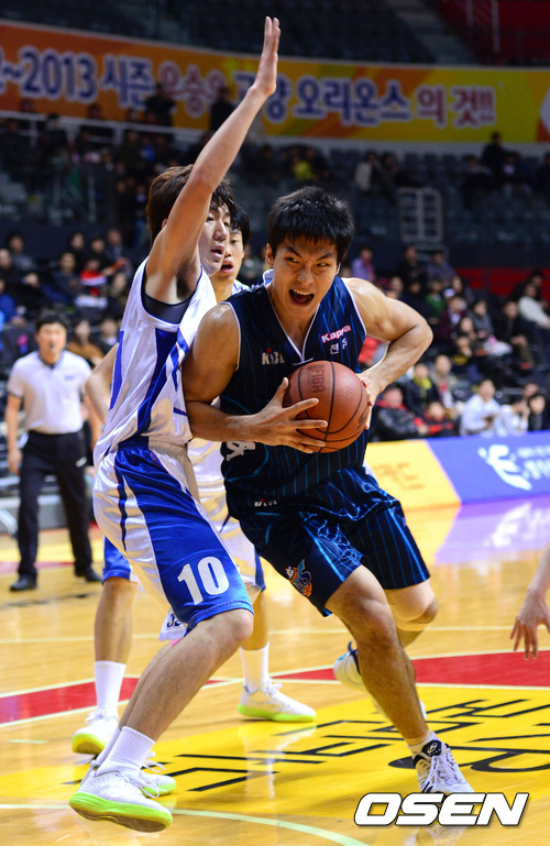 2일 오후 경기 고양시 고양실내체육관에서 열린 '2012 KB국민카드 프로-아마 최강전' 전주 KCC와 중앙대 경기, 2쿼터 중앙대 박철호가 KCC 노승준을 수비하고 있다.