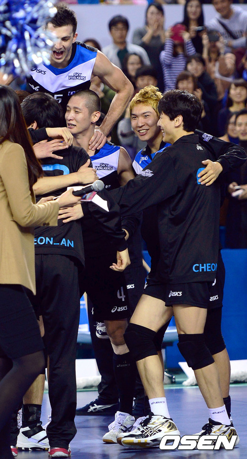 경기 종료 후 현대캐피탈 문성민과 가스파리니가 동료들과 기뻐하고 있다. / youngrae@osen.co.kr