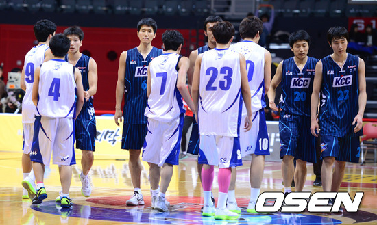 경기종료, KCC선수들과 중앙대 선수들이 인사를 나누고 있다. /ouxou@osen.co.kr