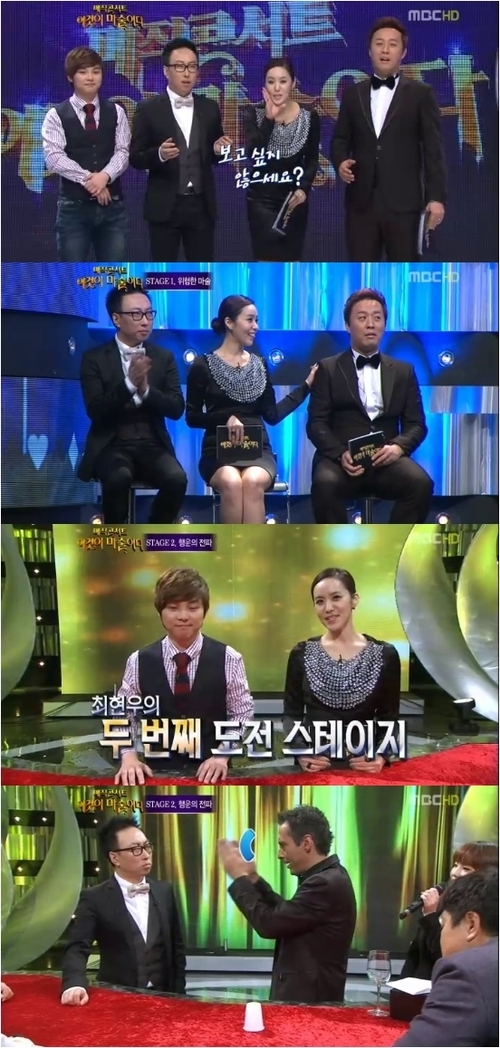 2일 방송된 MBC 예능 프로그램 ‘일밤’의 새로운 코너 ‘매직콘서트-이것이 마술이다’는 세계 최고의 마술사와 한국의 마술사 최현우가 대결을 벌인 후 국민판정단과 패널로부터 성공 혹은 실패를 평가받는 구성을 내세웠다. 이 프로그램은 '무한도전' 멤버 박명수·정준하와 KBS 아나운서 출신 박지윤이 진행을 맡았다.