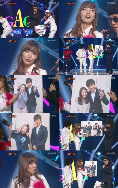 신보라는 2일 오후 방송된 KBS 2TV ‘개그콘서트’의 인기코너 ‘용감한 녀석들’에서 지난 방송에서 이승기와 ‘생활의 발견’에서 호흡을 맞췄던 사실을 언급하며 슬슬 개그 본능을 발휘했다.
