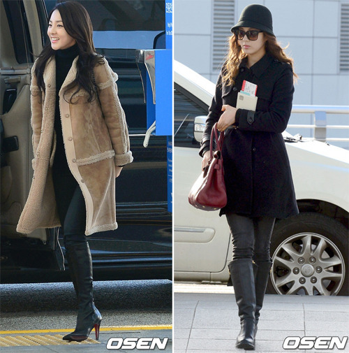 소녀시대 서현은 코트부터 부츠까지 올 블랙 컬러매치로 차분하면서 세련된 룩을 연출했다. 여기에 매치한 모자는 ‘메텔’을 연상케 하며 숙녀다운 느낌을 더했다. 서연 역시 레드 컬러 백으로 스타일에 포인트를 줘 밋밋함을 없앴다.
