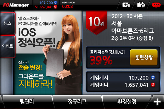 ‘FCM 모바일 앱’은 PC에서 가능했던 매니지먼트 시뮬레이터를 어플리케이션을 기반으로 때와 장소를 가리지 않고 ‘구단 관리’와 ‘경기 일정’, ‘결과 확인’ 등을 가능하게 한 서비스다. 특히 핵심 요소인 ‘팀 전술’과 ‘개인전술’ 시스템도 반영돼, 즉석에서 전술을 변경해야 하는 상황도 대처가 가능해졌다.