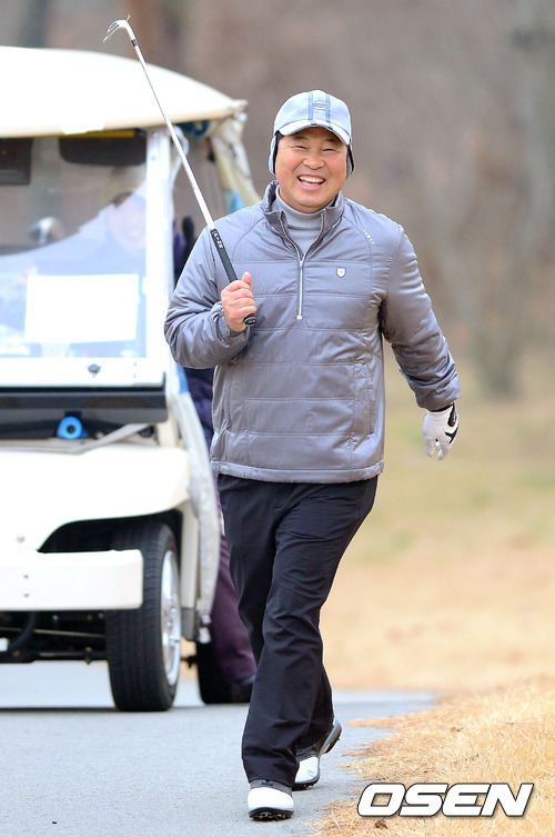 3일 경기도 이천 휘닉스 스프링스 컨트리클럽에서 열린 한국야구위원회(총재 구본능)가 주최하고 2012 팔도 프로야구 우승팀인 삼성 라이온즈가 후원하는 '제31회 야구인 골프대회'에서 SK 이만수 감독이 웃으며 그린으로 이동하고 있다.