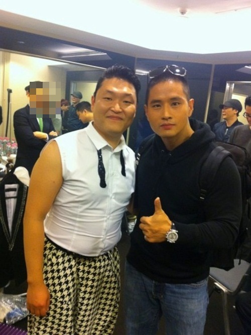 사진 속에는 이날 열린 2012 엠넷아시안뮤직어워드(MAMA)에 출연할 당시의 두 사람의 모습이 담겼다. 싸이는 활짝 미소를 짓고 있으며 유승준은 동안 외모를 과시한 채 엄지 손가락을 치켜 세운 모습이다.