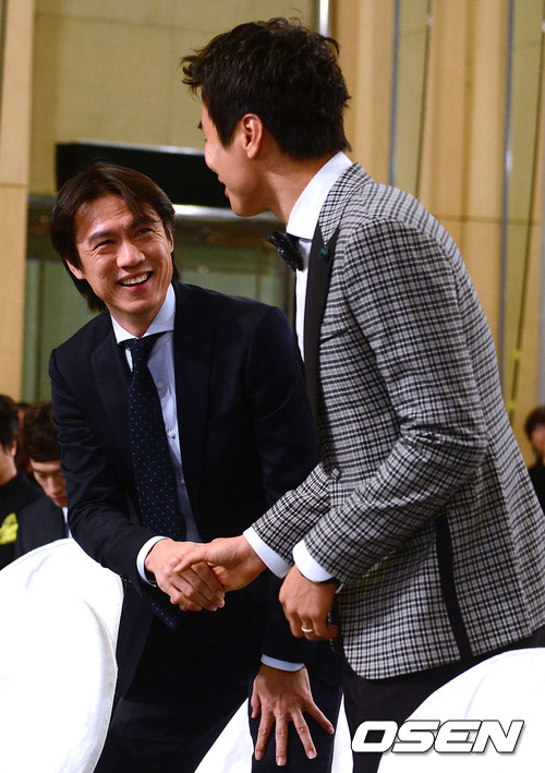 3일 오후 서울 홍은동 그랜드힐튼호텔 컨벤션센터에서 열린 '2012 현대오일뱅크 K리그' 시상식에서 홍명보 감독이 이동국과 이야기를 나누고 있다