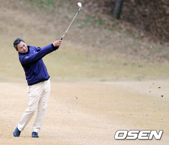 3일 경기도 이천 휘닉스 스프링스 컨트리클럽에서 열린 한국야구위원회(총재 구본능)가 주최하고 2012 팔도 프로야구 우승팀인 삼성 라이온즈가 후원하는 '제31회 야구인 골프대회'에서 두산 김진욱 감독이 어프로치샷을 날리고 있다.