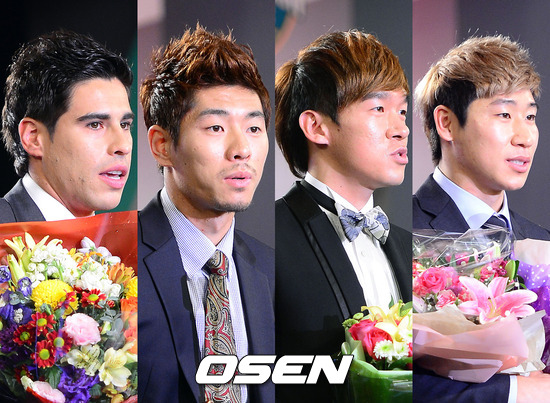 이근호(울산)와 황진성(포항), 하대성, 몰리나(이상 서울)는 3일 서울 홍은동 그랜드힐튼 호텔에서 열린 2012 현대오일뱅크 K리그 대상 시상식에서 베스트MF로 이름을 올렸다.