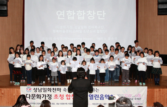 성남 일화 프로축구단(단장 박규남)은 지난 2일 신구대학교 대강당에서 열리는 다문화가정 초청 합창제 및 열린음악회를 후원하고 선수단 및 임직원이 함께 참여했다.