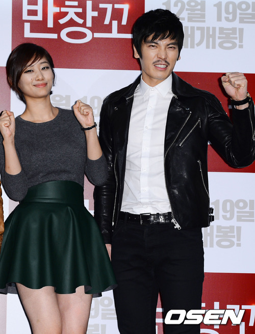 3일 오후 서울 왕십리 CGV에서 열린 영화 '반창꼬' 시사회에서 쥬니와 김성오가 포토타임을 갖고 있다.