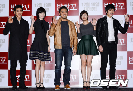 3일 오후 서울 왕십리 CGV에서 열린 영화 '반창꼬' 시사회에서 고수 한효주 마동석 쥬니 김성오가 포토타임을 갖고 있다.