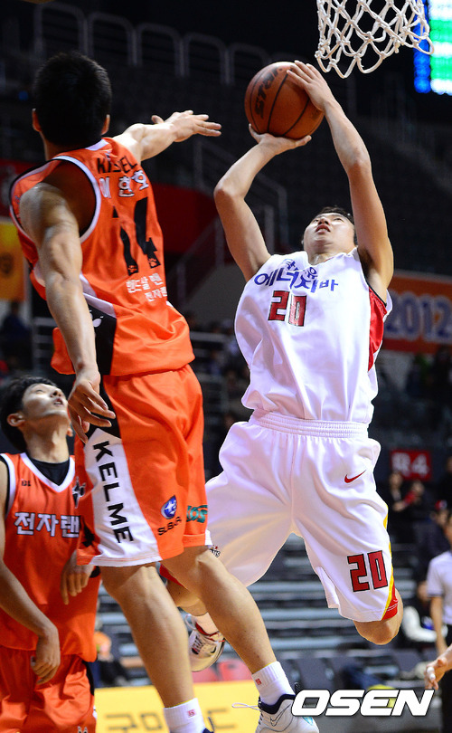3일 오후 경기 고양시 고양실내체육관에서 열린 '2012 KB국민카드 프로-아마 최강전' 인천 전자랜드와 고양 오리온스의 경기 4쿼터 오리온스 성재준이 전자랜드 이현호의 슛블록을 피해 점프슛을 시도하고 있다.