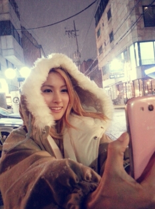 사진 속 박규리는 털이 달린 두꺼운 외투를 입고 카메라를 향해 미소를 지으며 셀카를 찍고 있다. 본인의 말처럼 쭉 뻗은 팔과 그로인해 화면에서 상대적으로 커다랗게 찍힌 손이 눈길을 끈다.