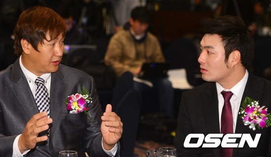 오릭스 이대호와 넥센 박병호가 이야기를 나누고 있다.