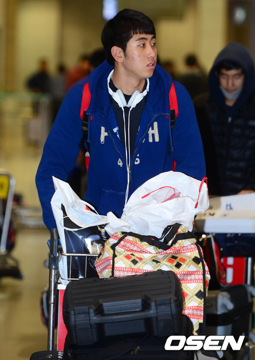4일 오후 인천국제공항을 통해 입국한 '제26회 아시아야구선수권대회' 대표팀 김민수가 입국장을 빠져나오고 있다.