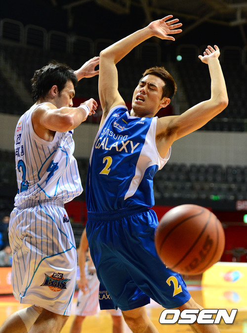 4일 오후 경기 고양시 고양실내체육관에서 열린 '2012 KB국민카드 프로-아마 최강전' 서울 삼성과 전주 KCC의 경기, 4쿼터 삼성 이관희가 파울을 당하며 공을 놓치고 있다.