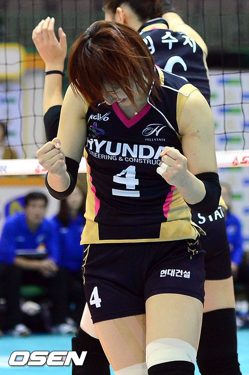 경기 종료 후 승리를 차지한 현대건설 황연주가 기뻐하고 있다. / youngrae@osen.co.kr