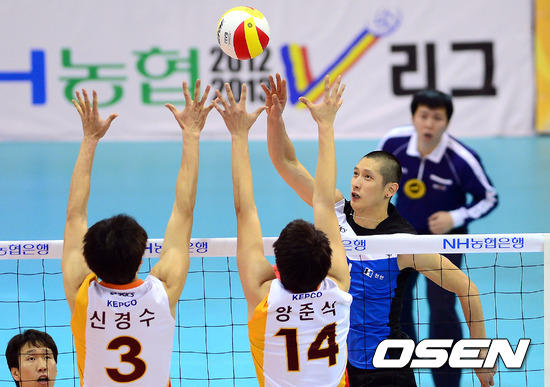 현대캐피탈은 5일 수원실내체육관에서 열린 NH농협 2012-2013 V리그 남자부 경기서 홈팀 KEPCO를 세트스코어 3-1(25-18, 23-25, 27-25, 25-23)로 승리를 거뒀다. 이날 승리로 현대캐피탈은 6승 2패(승점 16)를 거두며 3연승 행진을 달렸다. 반면 KEPCO는 1승 7패(승점 2)로 5위에 머물렀다.