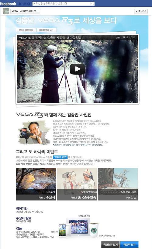 ‘작품명 공모’ 이벤트는 베가 페이스북 ‘김중만 사진전’ 페이지에서 참여할 수 있고 최종 발표는 2013년 1월 15일 동일 페이지에 공지될 예정이다.