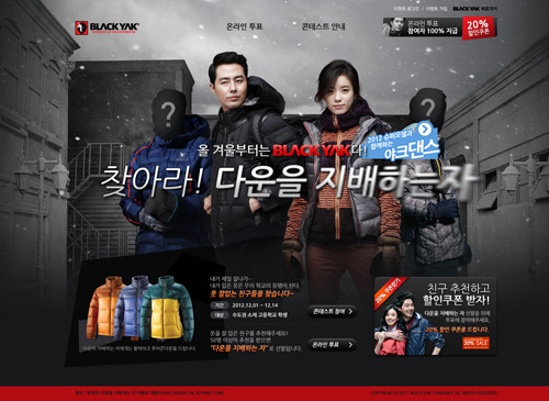 이번 이벤트는 14일까지 홈페이지에 10대만의 패셔너블한 코디 감각을 살린 윈터 스타일링 컷을 올린 뒤 친구 50명에게 추천을 받는 대로 선착순 300명이 자동선발 된다. 투표에 참여한 전원에게 다운재킷 20%할인 모바일쿠폰을 제공한다.