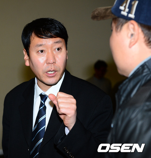 6일 인천 송도컨벤시아에서 열린 제12차 한국프로야구선수협회(이하 선수협)는 정기총회에서 총회 시작 전 박충식 사무총장이 선수들과 얘기를 나누고 있다.