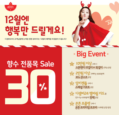 뷰티&헬스 스토어 디셈버투애니포가 12월 한 달동안 향수 전 품목 30% 할인하는 '12월엔 행복만 드릴게요' 프로모션을 진행한다.
