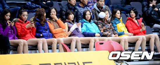6일 오후 경기 고양시 고양체육관에서 열린 '2012 KB국민카드 프로-아마 최강전' 결승전 인천 전자랜드와 상무의 경기 1쿼터 경기장을 찾은 슈퍼모델들이 경기를 관전하고 있다.