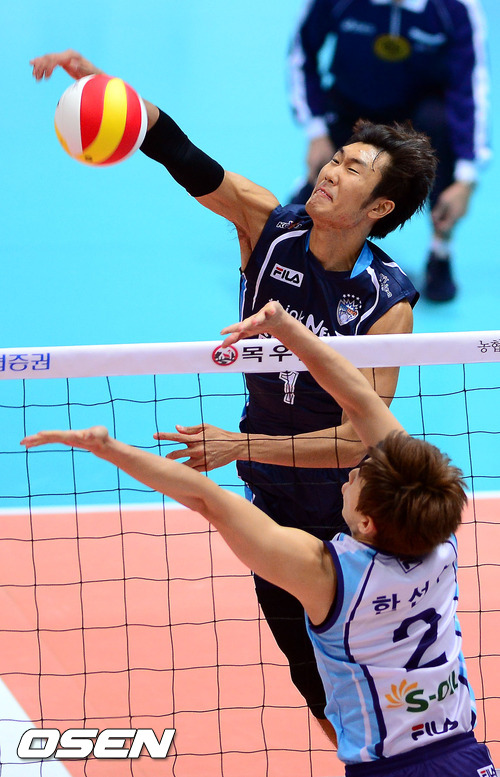 6일 오후 인천 도원체육관에서 열린 '2012-2013 NH농협 V리그' 남자부 대한항공과 삼성화재의 경기, 1세트 삼성화재 고준용이 속공을 시도하고 있다.
