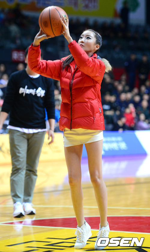 6일 오후 경기 고양시 고양체육관에서 열린 '2012 KB국민카드 프로-아마 최강전' 결승전 인천 전자랜드와 상무의 경기 하프타임 2012 슈퍼모델과 갖은 이벤트에서 한 모델이 자유투를 하고 있다.